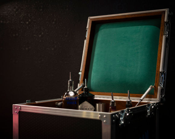 Colourful storage was installed at the other end of the room, with another mirror and lights. A drinks cabinet, upholstered by hand, was created from a flight case, designed to tie in with the entertainment theme.